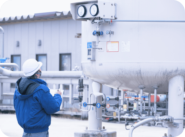 Our company has been designated by the Minister of Economy, Trade and Industry as a designated safety inspection body, and we conduct safety inspections for facilities subject to the High-Pressure Gas Safety Act, the Liquefied Petroleum Gas Safety Act, and the Safety Regulations for Industrial Complexes (specific facilities) across Japan (the Safety Regulations for Industrial Complexes apply to certain regions only). We carry out reliable safety inspections with professional expertise.