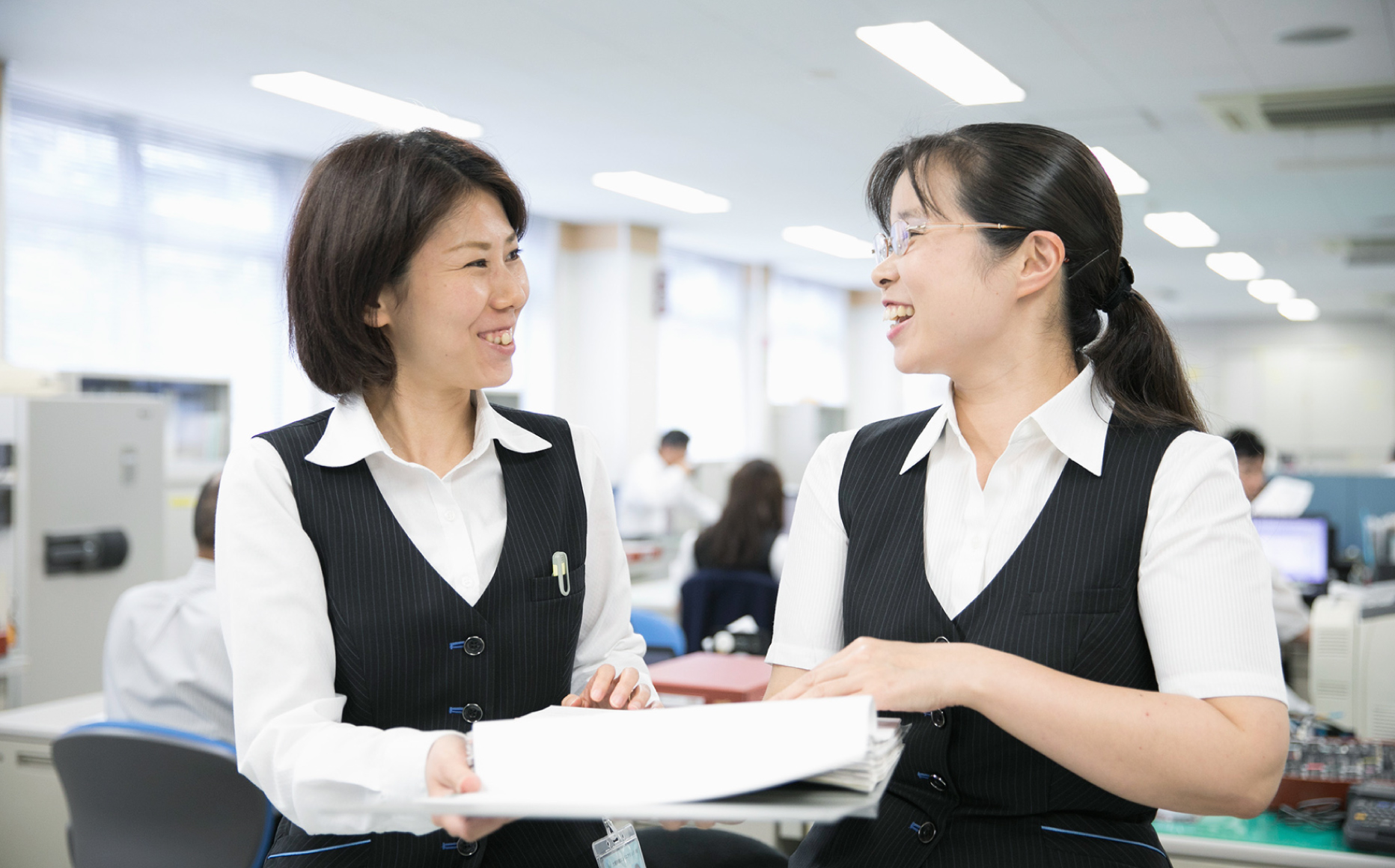 人事総務課の仕事は社員のみなさんが業務に集中できるように本社からサポートをすることです。保険や税金のデータチェックや給与の計算、また備品の交換や補充、来客対応などなど!なんでも屋さんと思って仕事をしています。