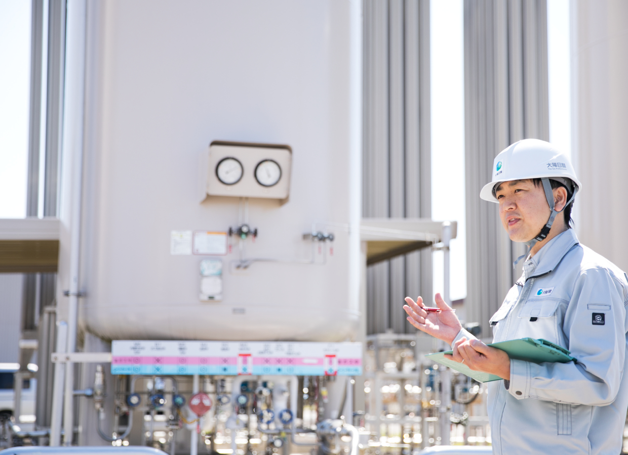 「ガスセンターの設備管理」、「ガスの品質管理」、「お客様の工場内のガス設備管理」を担っています。