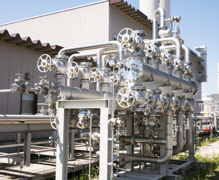 注意深く品質を管理されたガスは太いパイプを通って、お客様の施設へと供給されています。